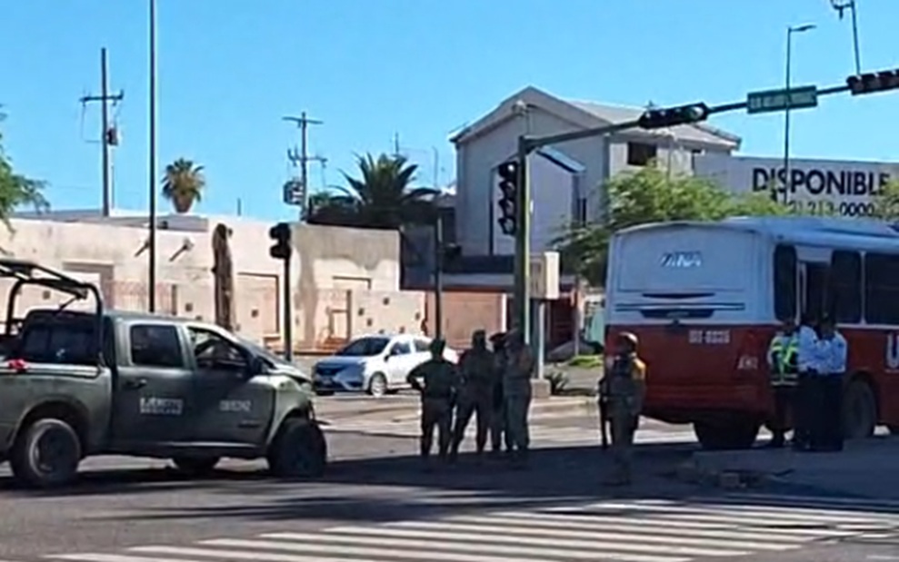 Una unidad del Ejército Mexicano chocó por alcance con un camión urbano, la mañana de este domingo 07 de septiembre, en Hermosillo.