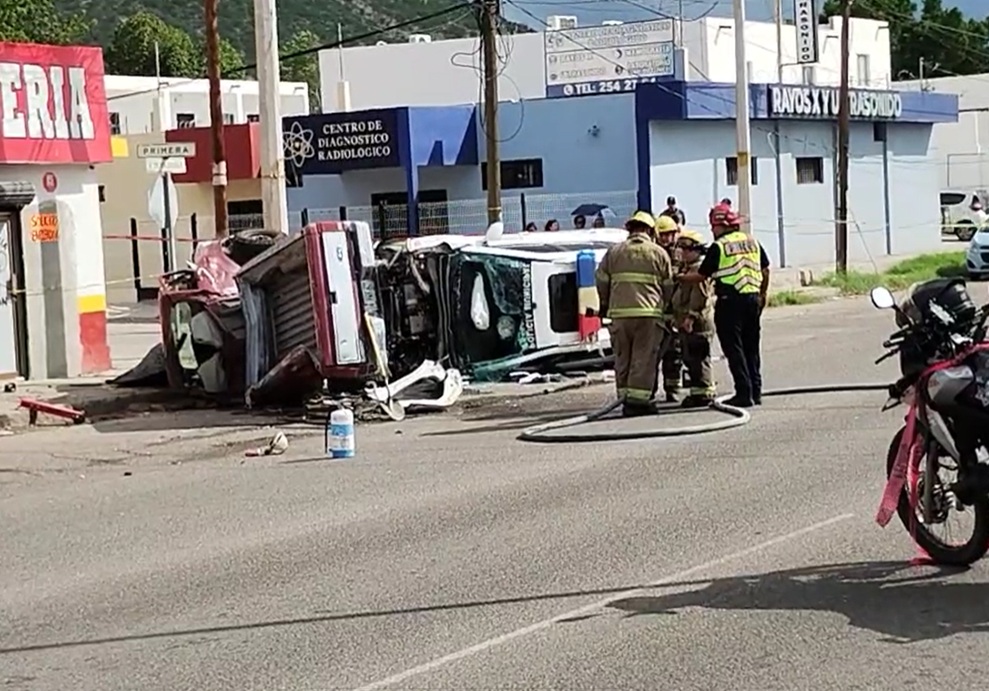 Choque y volcamiento en Hermosillo deja dos lesionados