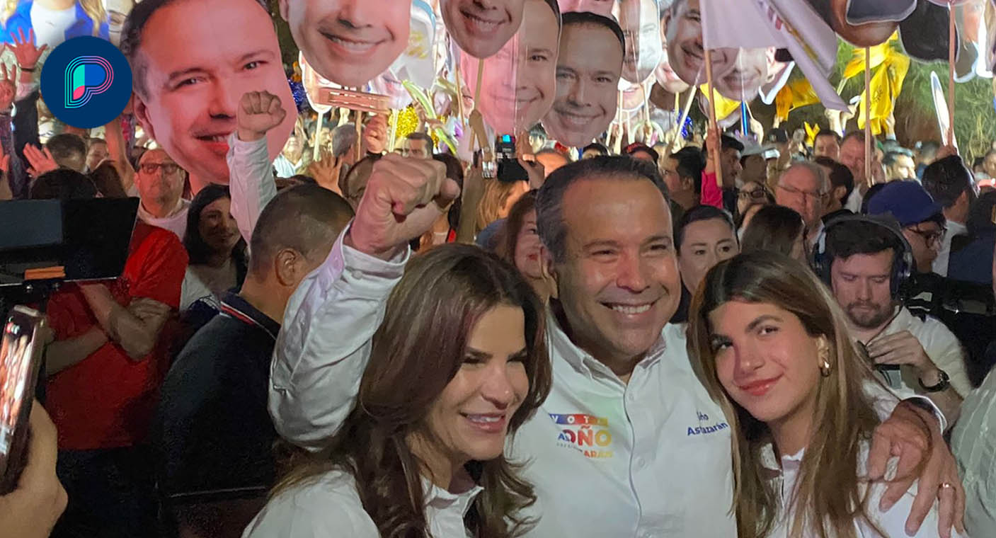 Hermosillo, Sonora.- Acompañado de su familia, con un espectáculo de drones ¡y hasta con un caballo!, así arrancó Antonio Astiazarán Gutiérrez su campaña por la alcaldía de Hermosillo.