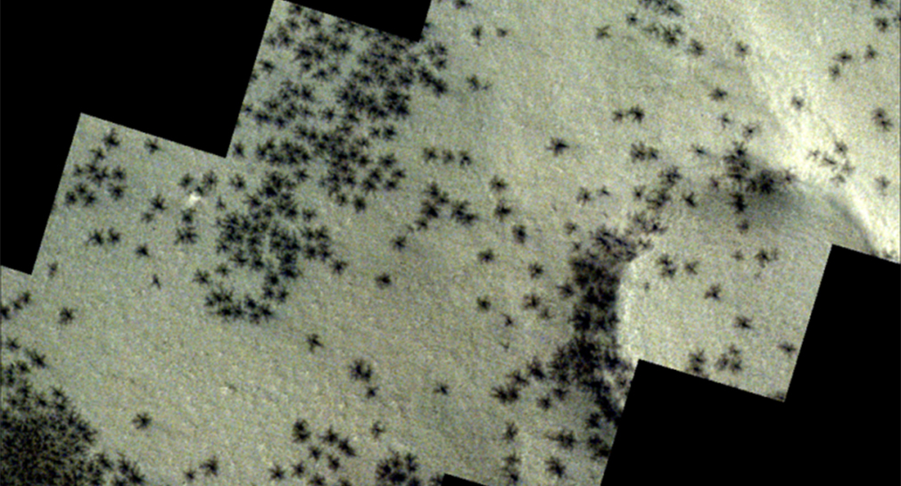 Descubren astrónomos una enorme comunidad de ‘arañas’ en la ‘Ciudad Inca’ en el Planeta Marte, sin embargo, la Agencia Espacial Europea señaló que esto no es nada más que un efecto visual, provocado por las erupciones estacionales de gases con dióxido de carbono en el planeta.