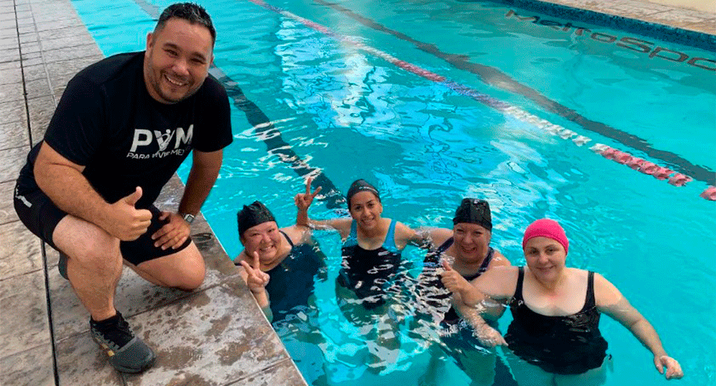 Hermosillo, Sonora.- En la última activación del reto saludable “Para Vivir Mejor” Juan Dórame, participante destacado, tomó las riendas de una sesión de Pool Party