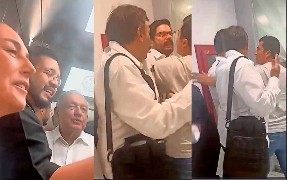 VIDEO Manifestante se cuela a elevador con Claudia y AMLO