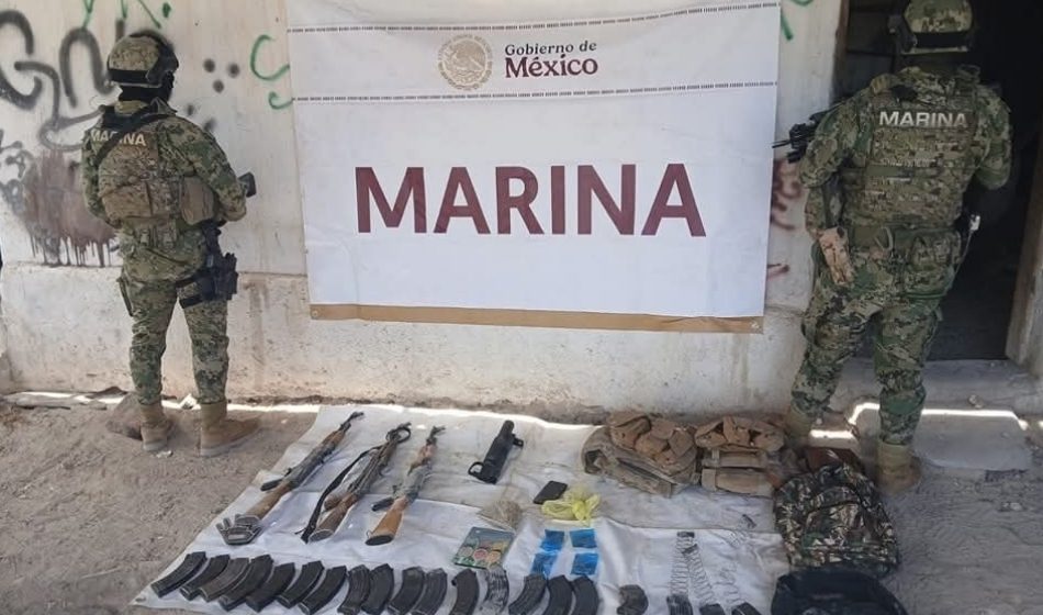 Elementos de la Secretaría de Marina, en coordinación con la Agencia Ministerial de Investigación Criminal (AMIC), dependiente de la Fiscalía General de Sonora, aseguraron armamento, equipo táctico y presunta droga en inmediaciones de la ciudad de Caborca, Sonora.